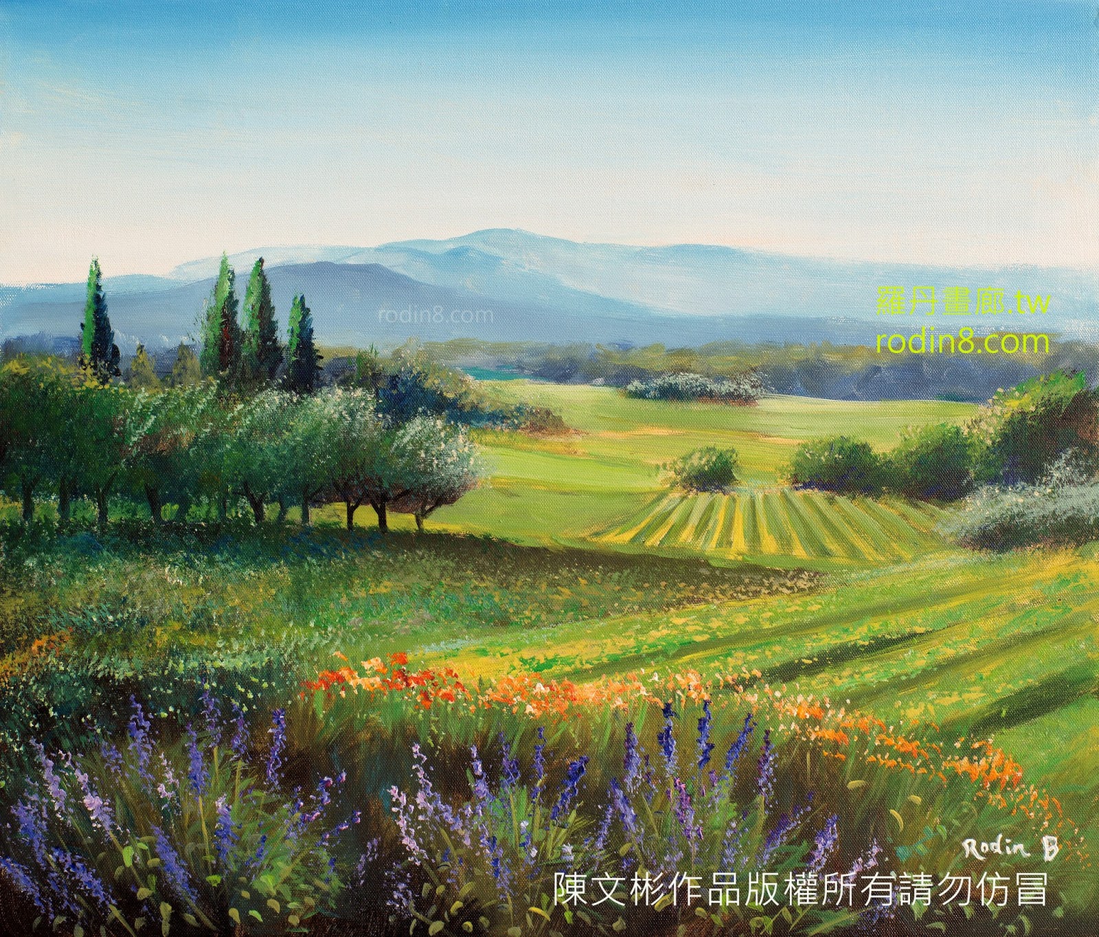 牆壁上掛一張景深寬闊的風景畫,讓整個室內空間更加延伸,綠色是大地之母的顏色,撫慰心靈消除疲勞緊張,是所有色彩中最佳配色建議! 視野寬闊景色深遠,青綠大地色彩調和舒適,身心靈可獲得紓壓! 讓心靈穿越森林,湖泊,優遊於雲朵之間,心花朵朵開。 風水命理陽宅老師一致推薦! 畫作賞析: 詩情畫意:山間花谷 在山間的花谷中, 薰衣草綻放,綠草如茵。 樹木高聳,陽光透過枝葉, 田野靜謐,天空湛藍如洗。 這一刻,時光凝滯, 在自然的懷抱中,尋找到心靈的歸宿。 讓我們在這片花谷間, 感受生命的美好與無限。 畫面的意境賞析 這幅畫描繪了一個充滿生機和自然美景的景象。前景中,薰衣草盛開,綠草如茵,讓人感受到大自然的生機勃勃。中景部分,高聳的樹木迎風搖曳,象徵著生命的堅韌與力量。遠景中,山巒靜靜矗立,天空湛藍與田野相映成趣,增添了畫面的深度與層次感。整個畫面給人一種寧靜和諧的感覺,讓人感受到內心的平靜與舒適。 藝術性與美學形式分析 色彩運用 鮮活柔美的色彩: 這幅畫運用了鮮活而柔美的綠色主調。前景中的紫色花朵和綠色草地形成了強烈的色彩對比,增添了畫面的視覺衝擊力。 對比效果: 山巒的藍灰色與前景的紫色和綠色形成了強烈的色彩對比,使畫面更加生動有趣。 光影效果: 陽光灑在花田和樹葉上,形成明暗對比,增強了畫面的真實感和立體感。 構圖設計 和諧的構圖: 畫面的構圖非常和諧,前景的花田、中景的樹木和背景的山巒形成了層次分明的畫面結構,使觀者的視線自然地從前景延伸到背景。 視線引導: 花田和山巒作為視覺焦點,吸引觀者的目光,並引導視線探索整個畫面。 細節描繪 細緻的筆觸: 畫家對細節的描繪非常細緻,花朵、草地和樹葉的巧妙融合,形成了似有若無的隨興感,增強了畫面的虛實交錯的想像空間。 層次感的表現: 前景、中景和背景的細節刻畫,賦予了畫面豐富的層次感和深度感,使畫面更加立體。 懸掛對環境空間的優點 寧靜與舒適: 這幅畫展示了自然景觀,能夠營造出一種寧靜和舒適的氛圍,適合懸掛在家中的客廳、書房或臥室,讓居住空間更加溫馨。 提升品味: 畫作的藝術性和美學價值能夠提升空間的品味和格調,為家庭或辦公場所增添藝術氛圍。 放鬆心情: 畫中的自然景觀和和諧氛圍能夠幫助觀者放鬆心情,減輕壓力,適合懸掛在辦公室或會議室,為工作環境帶來一絲清新的氣息。 激發靈感: 這幅畫作的藝術表現和美學形式能夠激發觀者的創造力和靈感,適合懸掛在創意工作室或藝術空間,為創作過程提供靈感來源。 總結來說,這幅畫作不僅具有極高的藝術價值和美學價值,還能夠為不同的環境空間帶來寧靜、舒適和藝術氛圍,是一件值得珍藏和欣賞的藝術品。這種景深寬闊的風景畫,讓整個室內空間更加延伸,綠色撫慰心靈、消除疲勞,是所有色彩中最佳的配色建議。視野寬闊,景色深遠,讓心靈穿越森林、田野,優遊於雲朵之間,心花朵朵開。 風水與命理分析 居家客廳玄關、辦公室風水畫: 充滿陽光、鮮明亮麗豐富的色彩,讓生活空間更有活力與朝氣,掛一張優美的圖畫讓人心情愉快。景深的圖畫讓視覺空間延伸。 樹石花草相間和諧有生命力: 雄偉挺拔山型優美是最佳靠山,象徵靠山、貴人,在事業旅途上若能得到貴人相助,將能事半功倍。 茂盛的樹林代表強大生命力繁衍和延伸: 象徵事業可蓬勃發展,不只向上,還能向左右延伸。 前景花草代表貴人、旺人緣: 增加人際關係的和諧和互助。