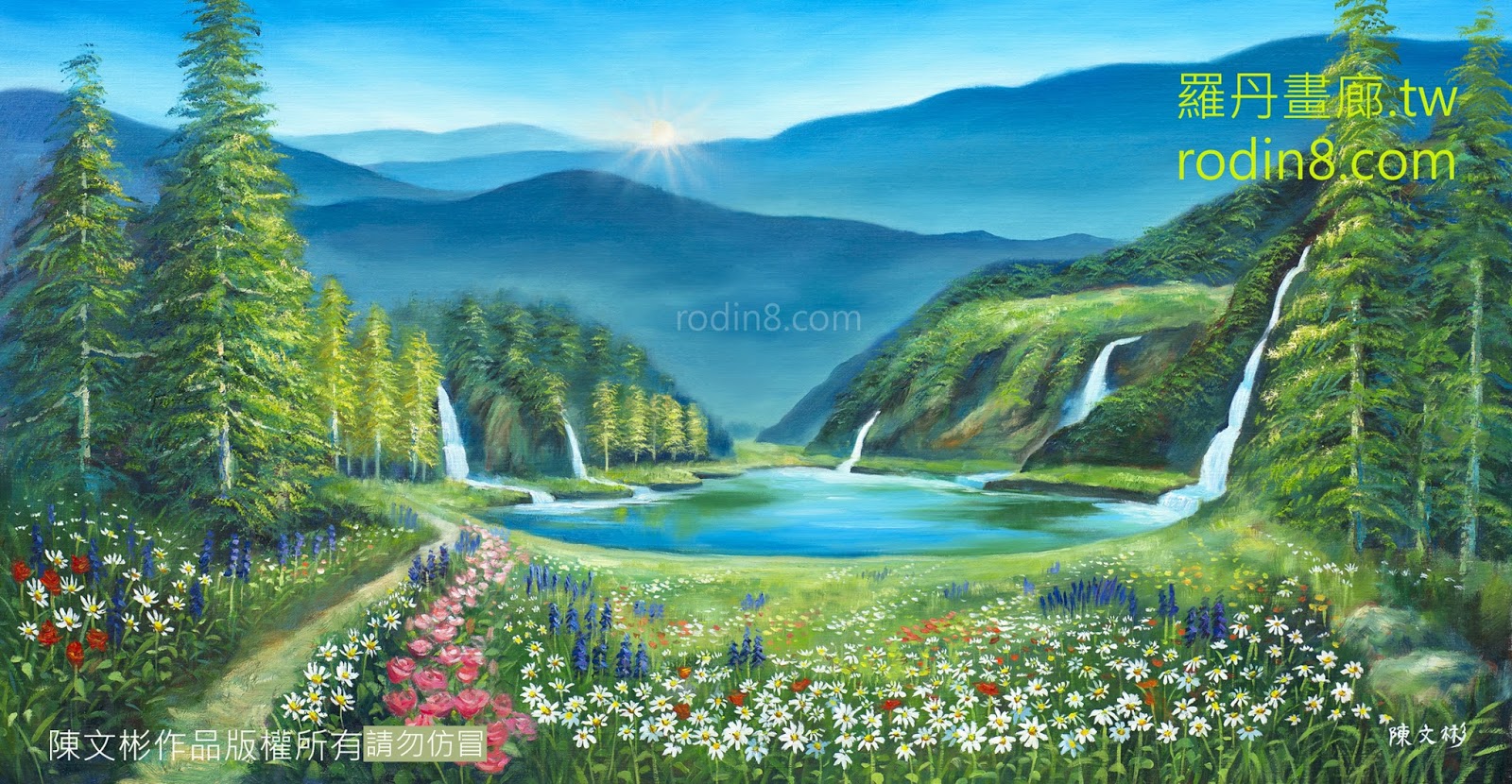 NEW (本畫為陳文彬畫家創作作品,請勿仿冒販售) 有太陽 有太陽按這裏看此張美麗圖畫超大圖檔 牆壁上掛一張景深寬闊的風景畫,讓整個室內空間更加延伸,綠色是大地之母的顏色,撫慰心靈消除疲勞緊張,是所有色彩中最佳配色建議! 讓心靈穿越森林,高山,優遊於雲朵之間,心花朵朵開。 風水命理陽宅老師一致推薦! 畫作鑑賞:光影流轉,生機盎然的自然頌歌 這是一幅令人心馳神往的風景畫作,它以其獨特的藝術魅力,將觀者引入一個充滿生機、陽光普照的自然秘境。整幅畫作透過精湛的筆觸和豐富的色彩,不僅呈現了視覺上的美感,更傳遞出深層次的生命能量與和諧寓意。 1. 光影交織,空間靈動: 畫面中央,一輪旭日或朝陽正從連綿的山脈後緩緩升起,金色的光芒穿透薄霧,灑落在山谷與湖面上,為整個畫面披上一層溫暖而希望的金色紗衣。這種由遠及近的光影變化,巧妙地營造出深邃的景深,使得視覺空間得以無限延伸,彷彿置身其中,感受著清晨第一縷陽光的撫觸。畫作色彩鮮明亮麗,充滿活力,無論是作為居家客廳、玄關的點睛之筆,或是辦公室的風水擺件,都能瞬間提升空間的明亮度與朝氣,讓人心情為之開闊,愉悅之情油然而生。 2. 山川為脊,靠山穩固: 畫中雄偉挺拔的山脈,其線條優美而堅實,如同穩固的靠山,巍然屹立。這不僅是自然景觀的壯麗呈現,更在風水學上寓意著堅實的後盾與貴人的相助。命理陽宅老師推崇的「靠山」象徵,在此畫中得到了完美詮釋,預示著無論在事業旅途抑或人生道路上,皆能得貴人扶持,事半功倍,穩步前行。 3. 松柏蒼翠,生命綿延: 前景與中景處,高大的松柏喬木以其挺拔堅毅的姿態,展現出不屈不撓的生命精神,它們深深扎根於大地,象徵著堅定不移的意志與蓬勃發展的生命力。茂盛的樹林不僅代表著強大的生機,更寓意著事業的繁衍與延伸,預示著其發展不僅能向上突破,更能向左右擴展,根深葉茂,持續興旺。 4. 花草繽紛,廣結善緣: 畫面前景,各色花草爭奇鬥豔,繁茂而和諧地生長著。這些色彩鮮豔、姿態各異的花朵,在風水上代表著貴人與旺盛的人緣。它們為畫面增添了生動的細節與層次感,也象徵著人際關係的和諧與豐盛,預示著廣結善緣,受人愛戴。 5. 溪流潺潺,財源活水: 畫中蜿蜒流淌的溪流和飛瀉而下的瀑布,不僅為畫面注入了動態美,更在風水學上象徵著源源不絕的財富與生機。水的流動代表著財運的活絡與積累,清澈的湖水則有聚財的寓意,共同營造出一個財源廣進、生機勃勃的景象。 風水哲理與藝術共鳴: 「人法天,天法道,道法自然」。人與大自然本為一體,當我們回歸自然、親近自然,便能獲得身心的滋養與平衡。這幅風景畫作正是將大自然的和諧與豐盛呈現在您的眼前,其風水力量在現代生活中更顯重要,能有效改善居家或辦公空間的磁場,引導積極能量。 總而言之,這幅畫作不僅是一件藝術品,更是一扇通往美好與和諧的窗。它以豐富的色彩、細膩的筆觸和深遠的寓意,為您的生活空間增添亮點,提升氣場,帶來積極向上的力量,使人心曠神怡,福運綿長。 客廳擺畫提升人際關係 【陳文彬簡歷】 2023 IFA國際美術協會國際文化賞/兵庫県立美術館 第五屆彰化縣半線天畫會理事長 2015陳文彬師生聯展彰化市市立圖書館 2015-2019台東書道展,日本東京都美術館,大阪市立美術館 2023彰化建縣300年藝術特展(邀請展) 2013建縣290-文化長河特展(邀請展) 2014彰化縣立美術館首展(開館首展邀請展) 2011磺溪當代名家邀請展,百年百畫,彰化文化局(邀請展出) 2011.8 台南市文化中心陳文彬普羅旺斯風景畫個展 2010.1 彰化署立醫院陳文彬師生聯展 2009/7.28 ∼ 8.8陳文彬普羅旺斯風景畫個展彰化縣文化局 2008/9.2 ∼ 9 / 17陳文彬師生聯展於彰化縣文化局 2007/08 遊歷南法普羅旺斯地中海岸 / 彰化縣文化局青少年詩畫比賽評審 2006/04 彰化縣文化局個展 / 全省美展水彩優選 2006/04 彰化縣文化局藝文研習成人西畫班教師2006.4 ∼ 2008.6 。 2005/04 埔鹽鄉圖書館邀請個展 03 埔鹽好修國小藝文館邀請個展 2005 / 全省美展水彩入選 / 玉山美展水彩入選 2004 /青溪新文藝水彩第一名金環獎 /玉山美展油畫入選 /日本IFA國際美協美展油畫入選 /日本IFA國際美協大阪市立美術館展出 /彰化建華銀行邀請展陳文彬懷鄉序曲油畫個展 2003 ∼埔鹽鄉駐鄉藝術家 /文藝金像獎佳作 /全國美展入選2002 /第三屆磺溪美展邀請展出/2000 文藝金像獎水彩佳作 1999大墩美展水彩第一名大墩獎/台陽美展水彩優選/高雄市美展入選 /台北市美展入選/ 羅丹畫廊美術指導老師